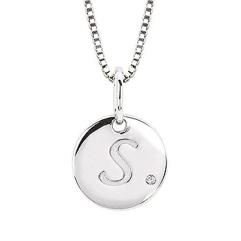 Diva Diamonds® Letter S Pendant In Sterling Silver With .01 Ct. Diamond With 18" Box Chain (Adjustable To 16") And Lobster Claw Clasp Sterling Silver Diamond Initial S Pendant with 16" Chain and 2" Extender