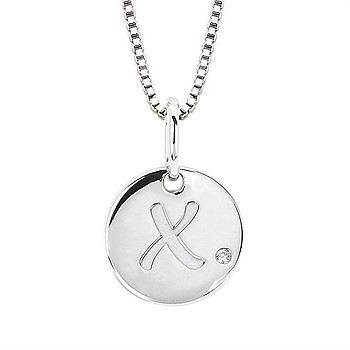 Diva Diamonds® Letter X Pendant In Sterling Silver With .01 Ct. Diamond With 18" Box Chain (Adjustable To 16") And Lobster Claw Clasp Sterling Silver Diamond Initial X Pendant with 16" Chain and 2" Extender