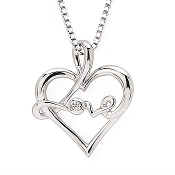 Diva Diamonds® Love Pendant In Sterling Silver With .01 Ct. Diamond With 18" Box Chain (Adjustable To 16") And Lobster Claw Clasp