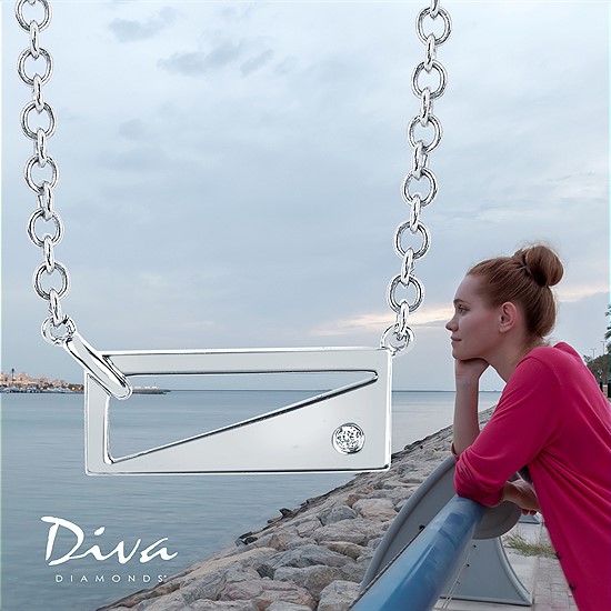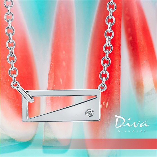 Diva Diamonds® Rectangle Necklace In Sterling Silver With .01 Ct. Diamond With 18" Attached Chain