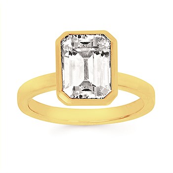 Eco-Brilliance® 3Ct Emerald Cut Center Bezel Set Lab-Created Diamond Engagement Ring In 14K Gold