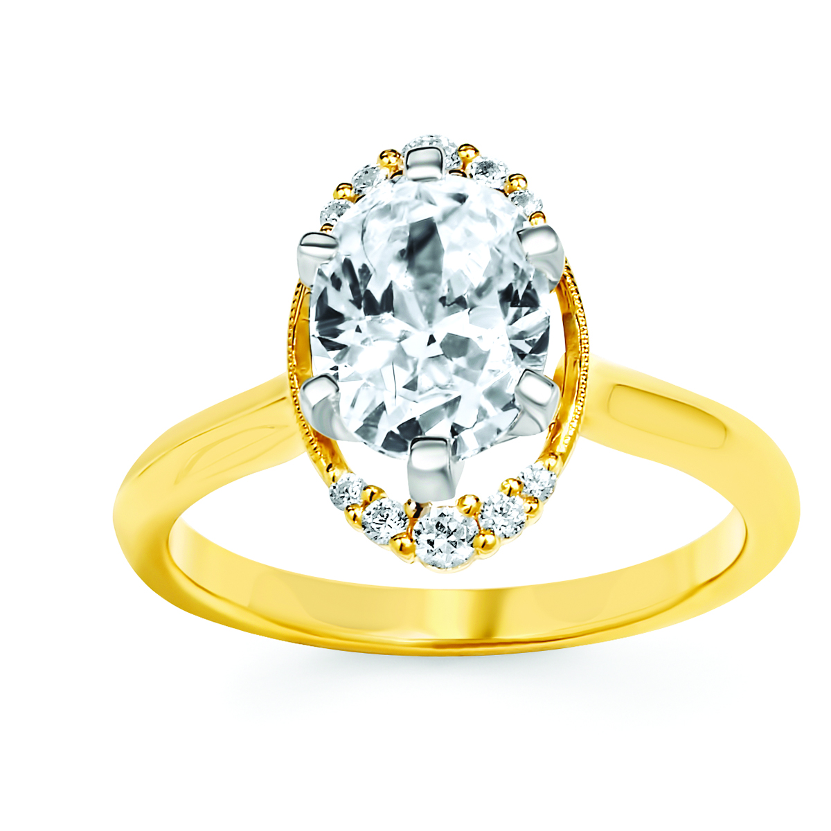 Engagement Ring Forever ElegantĀ® 1/8 Ctw. Diamond Semi Mount shown with 2 Ct. Oval Center Diamond in 14K Gold