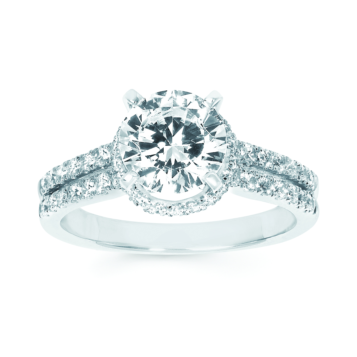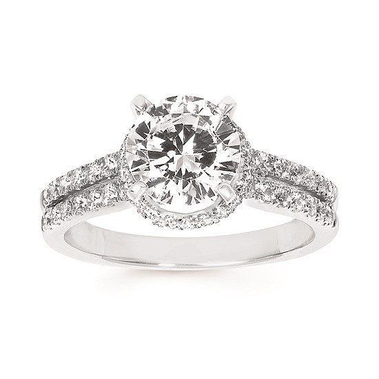 Engagement Ring Forever ElegantĀ® 1/2 Ctw. Diamond Semi Mount shown with 1 1/2 Ct. Round Center Diamond in 14K Gold