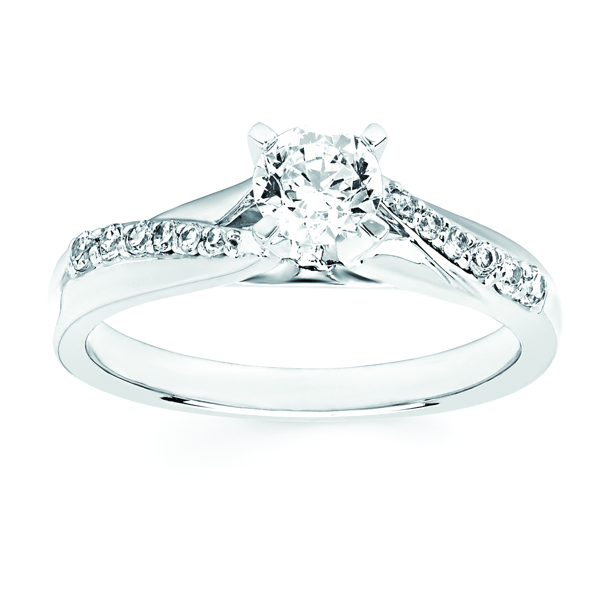 Engagement Ring Modern Bridal: 1/8 Ctw. Diamond Split Shank Semi Mount shown with 1/2 Ct. Round Center Diamond in 14K Gold