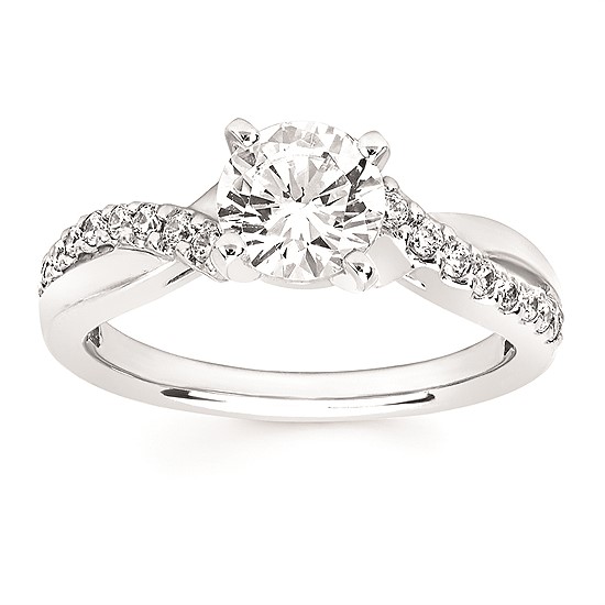 Engagement Ring Modern Bridal: 1/5 Ctw. Diamond Semi Mount shown with 1 Ct. Round Center Diamond in 14K Gold