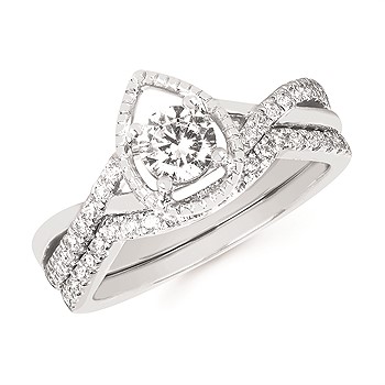 Engagement Ring Classic Bridal: 1/8 Ctw. Diamond Semi Mount shown with 1/2 Ct. Round Center Diamond in 14K Gold